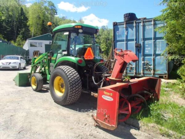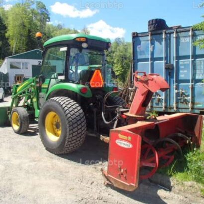 Le John Deere 4520 de 2010 est un modèle équipé pour répondre à une variété de tâches. Avec son puissant moteur John Deere de 53 chevaux et son turbo à 4 cylindres, il offre une performance robuste. Sa polyvalence est renforcée par une gamme étendue d’accessoires, dont un godet de chargement, un souffleur arrière, et une série de gratte et balai pour différents types de travaux. La cabine confortable et climatisée ainsi que la transmission Power Reverse rendent l’utilisation de cet engin agréable et efficace, faisant de ce modèle un choix complet pour diverses applications.